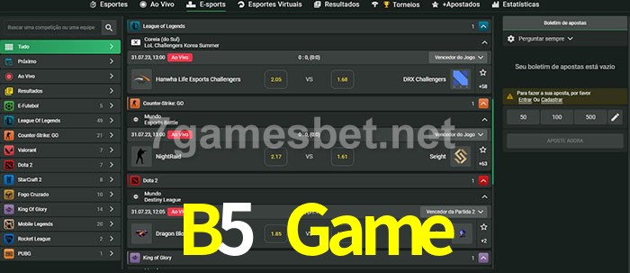 O B5 Game oferece uma grande seleção de opções de apostas em e-sports com probabilidades competitivas